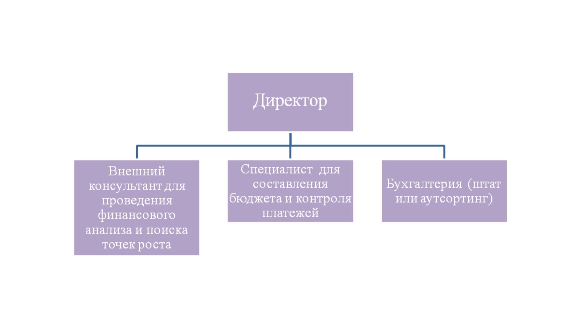 Данная структура управления финансами обеспечит финансовую устойчивость организации и позволит создать базу для масштабирования бизнеса.